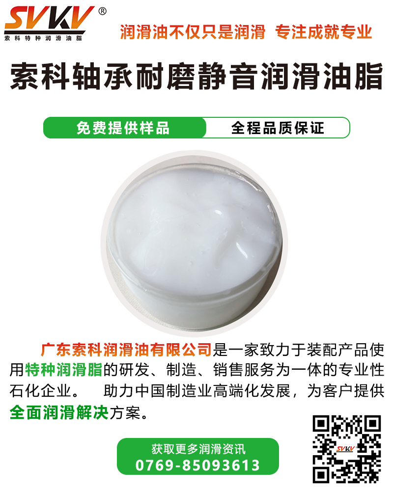 廣東索科潤(rùn)滑油有限公司是一家致力于裝配產(chǎn)品使用特種潤(rùn)滑脂的研發(fā)、生產(chǎn)、定制、服務(wù)為一體的專業(yè)性石化企業(yè)。致力為制造業(yè)客戶,提供專業(yè)的選油方案,協(xié)助客戶解決產(chǎn)品裝配時(shí)的潤(rùn)滑難題,還可根據(jù)客戶特殊需求訂做適合的潤(rùn)滑油品。有效提高產(chǎn)品性能、減低維護(hù)成本,索科助力制造業(yè)高端化發(fā)展!