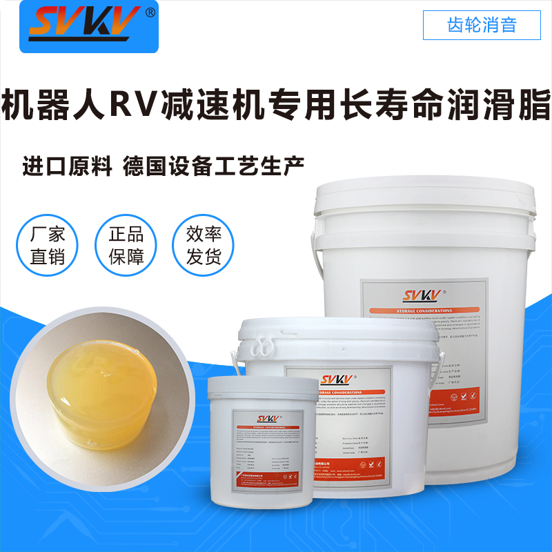 索科SVKV機器人RV減速機專用長壽命潤滑脂選用高性能基礎油,并添加多種高效抗氧化、抗腐蝕添加劑精制而成,是專為各種機器人減速電機齒輪和傳動部位而研制的齒輪潤滑油脂。索科SVKV機器人RV減速機專用長壽命潤滑脂能有效減少RV減速機磨損,降低噪音,達到延長使用壽命的效果。